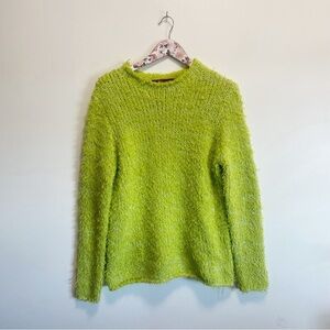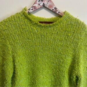 SIES MARJAN Leta Fuzzy Metallic Slim Sweater! Lime Green & Silver Small