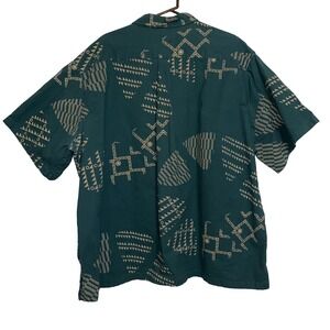 SIG ZANE Hawaiian Aloha Shirt Green Beige Button Down Size 4XL Petroglyph Design
