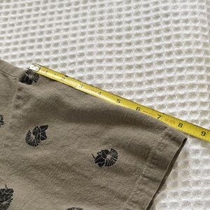 This polo has the beautiful lehua flower. The color is a nice earth tone. There are no tags for size or material. Please look at the photos for measurements. The feel is of quality linen that Sig Zane is renowned for.