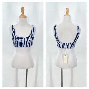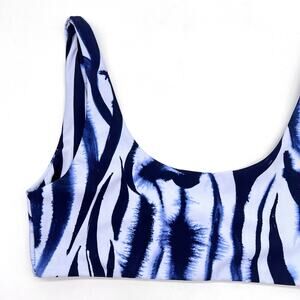 SIGAL Zebra Bikini Top Womens Medium Blue Striped Scoop Neck Tiger Stripe NEW