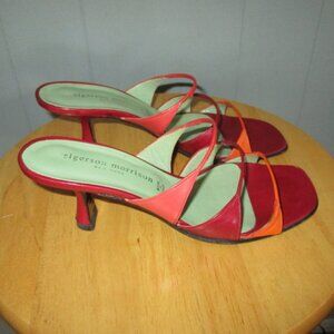 Sigerson Morrison, Multi-Color, Strappy, Kitten Heel, Slide On Leather Sandals