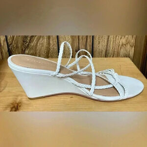 Gorgeous strappy wedge sandals by SIGERSON MORRISON. White braided leather knitted straps with white leather covered wedge. Wedge is 3.25”. EUC some very light discoloration on inside of strap, see pics. Otherwise in perfect condition.