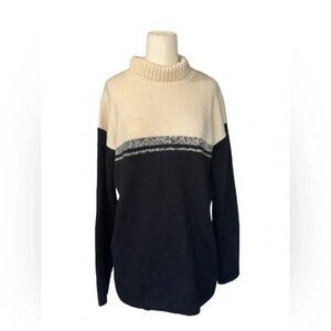 SIGNATURE BY NORDSTROM - 100% Cashmere Turtle Neck Sweater Cream & Black