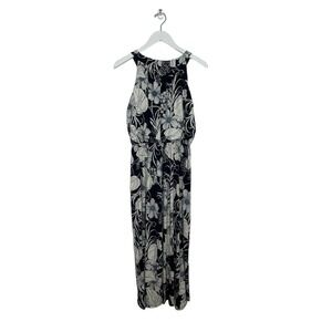 This beautiful navy and ivory floral dress from SIGNATURE BY ROBBIE BEE is a must-have for any fashion-forward woman. The dress features a sleeveless design with a halter neckline and a pullover closure, making it easy to wear.