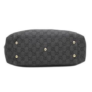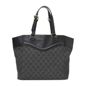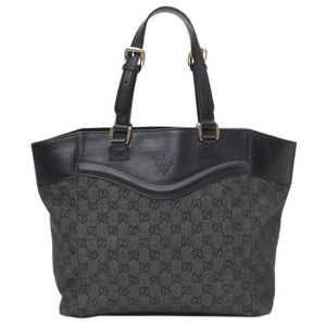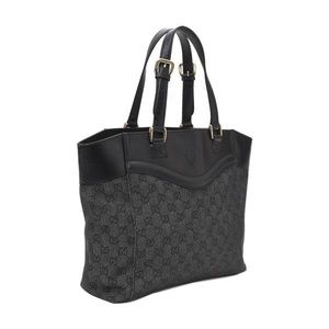 ALL SALES FINAL. Authentic Gucci tote Leather trims bring elegance to this GG patterned denim handbag.