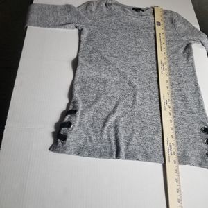*SIGNATURE STUDIO GRAY AND WHITE SWEATER WITH BLACK STITCHING ON THE SIDES