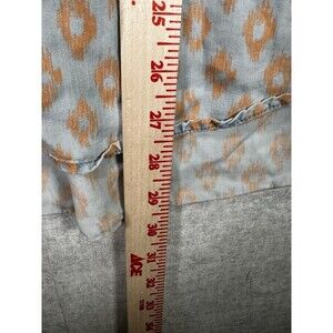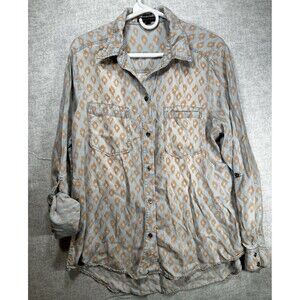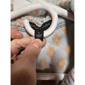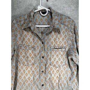 SIGNATURE STUDIO Womens Large Button Down Shirt Blue Orange Pattern Chambray