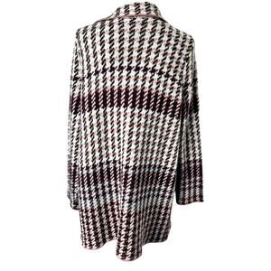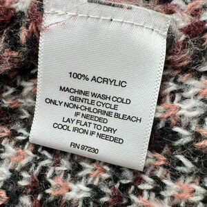 This pink and gray knit cardigan sweater by Signature Studio is perfect for any season. The open-knit style and relaxed fit make it comfortable and easy to wear. The long sleeves and cozy design make it perfect for cold days. The sweater is machine washable and made of acrylic material, ensuring durability and easy care. The geometric pattern and bohemian theme of this sweater add a touch of nature and art to any outfit. The hippie, colorful, and cozy design is perfect for teachers, students, and anyone who loves the outdoors. This sweater is available in size L and is perfect for women who want to stay comfortable and stylish.