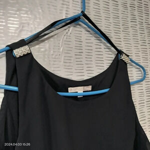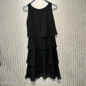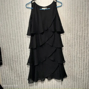 SIGNATURE TESSA Womens Black Chiffon Tiered Ruffle Dress 6 Lined Cocktail Party