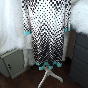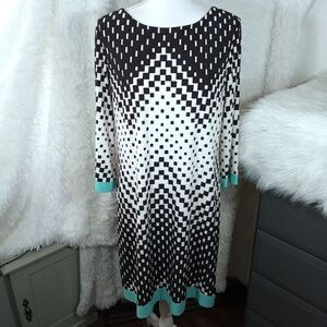 SIGNATURE CAMRYN BLACK, WHITE, & TURQUOISE DRESS SZ.14 EUC.