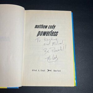 Selling "Powerless" by Matthew Cody. This is a 2009 Hardcover Book signed by the Author, Matthew Cody, to a fan. It's in Great Condition!