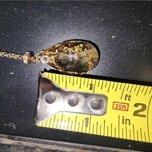 This stunning vintage estate Swarovski necklace is a true masterpiece of timeless elegance. Measuring 17.5 inches in length, the piece features a radiant gold-tone twisted chain that exudes sophistication. The centerpiece is a beautifully faceted golden crystal teardrop pendant, which reflects light brilliantly and adds a luxurious touch to the design.