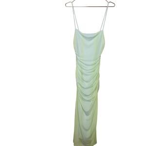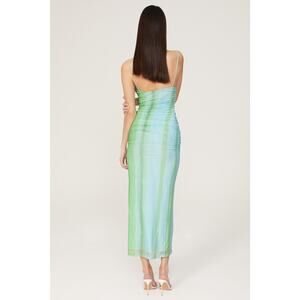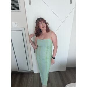 SIGNIFICANT OTHER Green Striped Mesh Square Neck Bodycon Verona Dress is a chic and contemporary statement piece. Designed with a flattering square neckline, this bodycon dress hugs the body for a sleek silhouette. The green striped mesh overlay adds texture and visual interest, while the mid-length hem enhances its sophisticated appeal. Perfect for evenings out or stylish gatherings, this Size US 6 dress offers a blend of bold design and modern elegance.