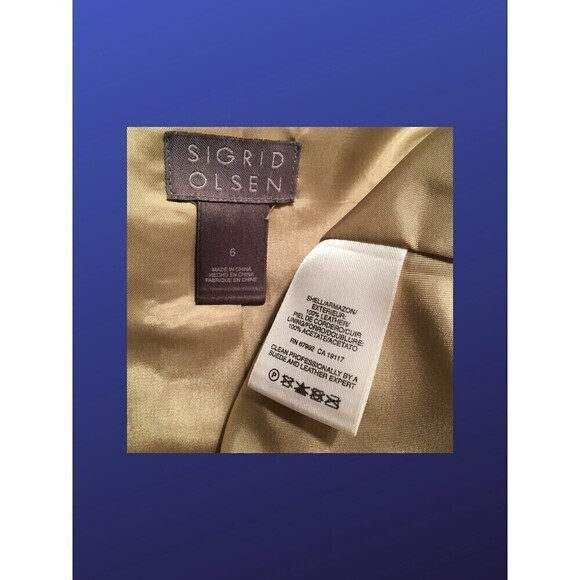 SIGRID OLSEN 100% LEATHER Blazer Jacket, BONE BEIGE, Size 6. New Without Tags, EXCELLENT condition. This leather blazer jacket is marked as a size 6, but it fits more like an 8-10. Please check measurements for accurate fit. 100% LEATHER; 100% acetate lining, fully lined; one-button closure; top-stitch accents; hook hanging loop attachment at rear neck; vertical/princess seaming; notch lapels; single breasted. This jacket is BUTTERY SOFT, GORGEOUS, and SO VERSATILE! It goes with everything from a dress and heels, to jeans and boots! Its one of those garments that can be a wardrobe staple for YEARS. FABULOUS! EXCELLENT/NWOT CONDITION, pictures serve as full description, as is, no returns.
