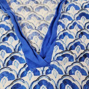 SIGRID OLSEN 100% Linen Three-quarter Sleeve Collared Popover Top Coastal Medium