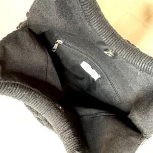 SIGRID OLSEN Macrame Bag Wood Ring Handle Black Summer Beach Boho Casual