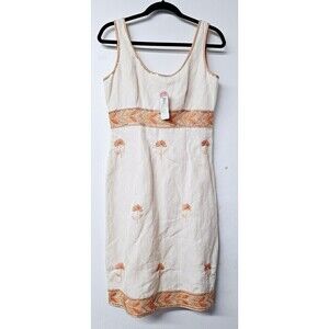 SIGRID OLSEN NWT Tan Embroidered Silk & Linen Blend Women Dress (4) $240