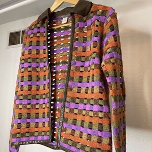 SIGRID OLSEN Vintage Halloween Retro Multicolor Funky Jacquard Sweater Cardigan XS