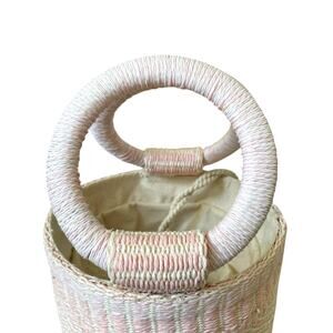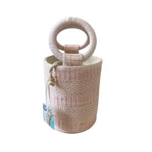 SIGRID OLSEN Woven Pink & Cream Bucket Handbag Purse Tote Beach Fashion