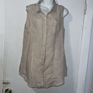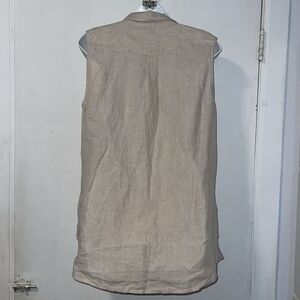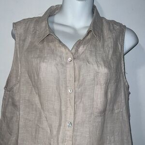 SIGRID OLSEN 100% Linen Light Brown Tan Sleeveless Button Up Blouse-L