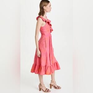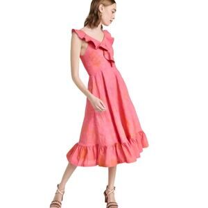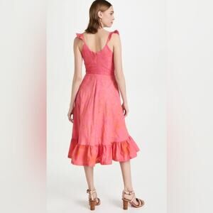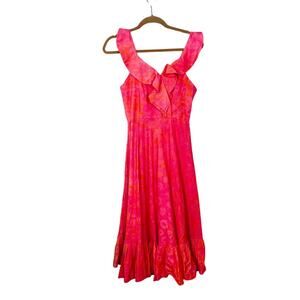 SIKA v-neck midi dress cotton pink ruffle hem new small