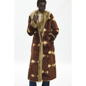 SILENCE + NOISE BY UO Women's Lexi Faux Fur Trim Longline Coat Size M In Brown