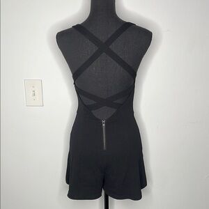 Chic black sleeveless romper. Perfect for any occasion. Has a crisscross back and a zipper in the back.