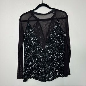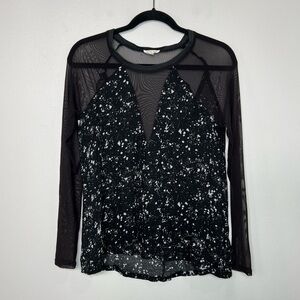 SILENCE + NOISE Splatter Print Sheer Mesh Long Sleeve Top size Small