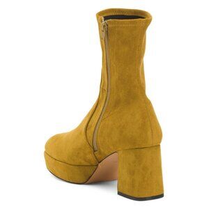 stacked block, lightly padded footbed, size chart conversion may vary slightly by country, faux suede finish