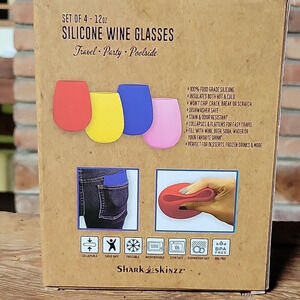 Set of four collapsible silicone "glasses", great for pool parties, boating, cocktails on the dock. Dishwasher safe, BPA free.