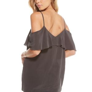 SILK BASICS COLD SHOULDER DOUBLE V RUFFLE TOP