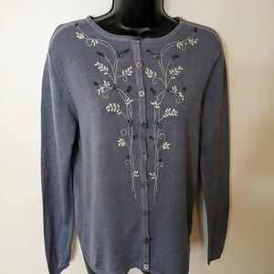 SILK LORE Dusty Blue Lightweight Ribbon Embroidered Silk Cardigan Size Small