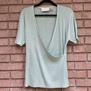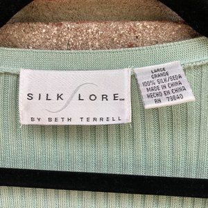 SILK LORE Short Sleeve Sweater. 100% silk in mint green. Figure flattering.