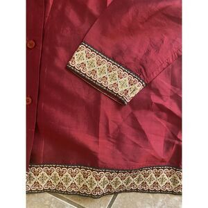 SILK Lore Burgundy Shirt / Jacket & Tank 100% Silk L Embellished Gold Vintage