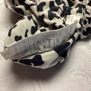 These are beautiful panties never been worn. They have the beautiful slip that goes all the way up the side. I don’t know if you can see it quite well enough from the picture but they’re the softest most gorgeous silk. They’re made in the USA and they are a size small they’re made by a NDRES intimates Incredibly beautiful and they’re the black and white leopard print man smoking no pet