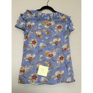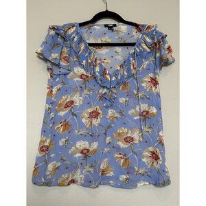 SILK Paige Women's Blue Floral Ruffle Sheer Blouse Top Size Small Flutter Sleeve