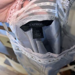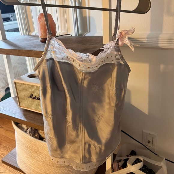 Gray and pink lace tank top with bow detail