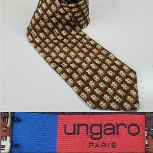 SILK UNGARO PARIS Men's brown tan pattern necktie neck tie