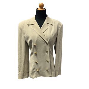 SILK SALVATORE FERRAGAMO VINTAGE DOUBLE BREASTED BEIGE BLAZER WITH GOLD HEEL BUTTONS