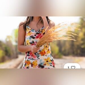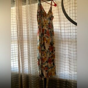 BEAUTIFUL LIKE NEW SATIN/SILKY T LENGTH DRESS FOR SUMMER!!! SOFT AND FLOWS cowl neck