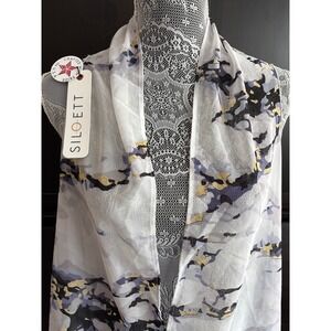 SILOETT Marble Print Duster Open Front Kimono Beach Resort Cruise Cover Up NWT