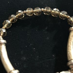 Beautiful Crystal-cut Smokey Topaz Glass Bead Bracelet finished with hammered tubes of .925 Sterling Silver