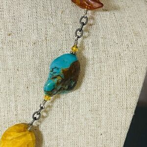 SILPADA N1296 Sterling Silver Turquoise Jasper Amber Pendant 17" Necklace Very G