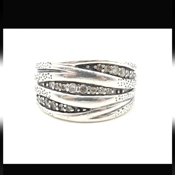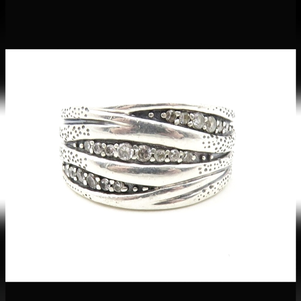 Gorgeous organics ring with .925 sterling silver and inlaid cz modern sz 7