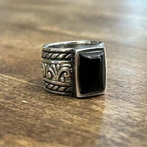 SILPADA Sterling Silver SIZE 7 Black Onyx Filigree Scroll Band Ring Chunky
