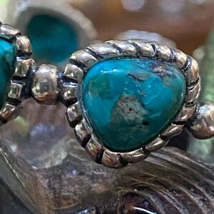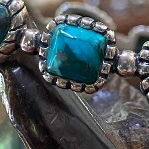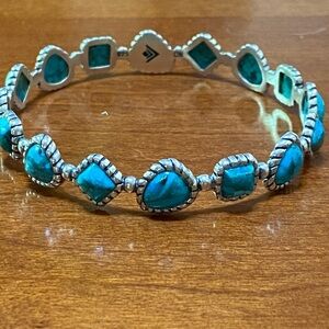 Elegant turquoise bracelet set in silver. Perfect for adding a touch of color to any outfit. 2-1/2” inside diameter B3218