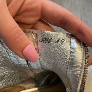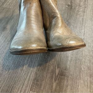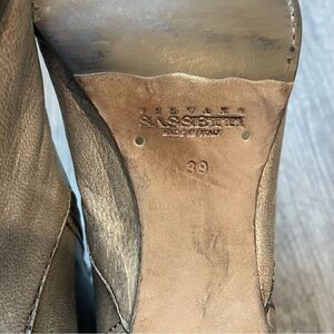 These Silvano Sassetti boots are in good used condition. Taupe gray tan color leather. Zipper details on both sides. A couple of small discolorations. Distressed style. Size 39, fits like a US 9.