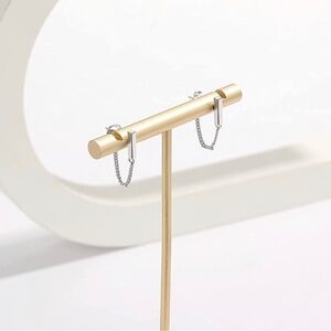 SILVER 18k White Gold Plated Bar Chain Linked Earrings