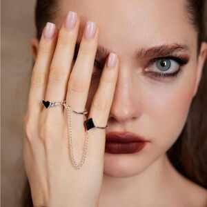SILVER 2pc Heart Geometric Ring Set