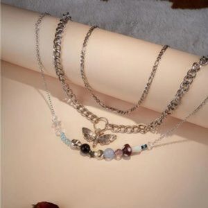 SILVER 3pc Bee Beaded Necklaces Set